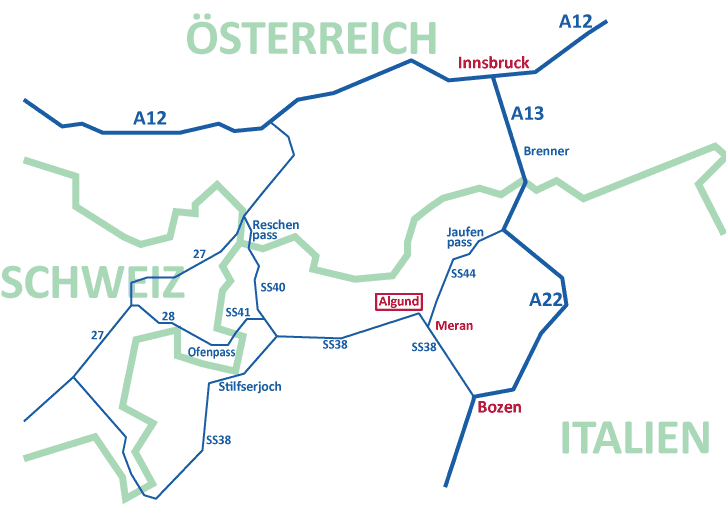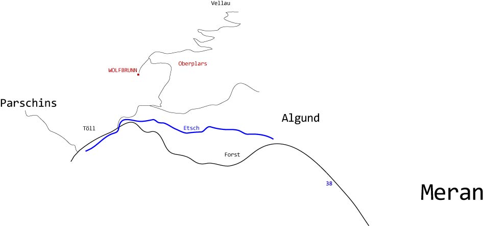 Wenn Sie mit der Bahn anreisen, fahren Sie bitte vom Bahnhof Meran mit dem Bus Nr. 235 Richtung Vellau (Velloi) und steigen in Oberplars (Plars di Sopra) aus.